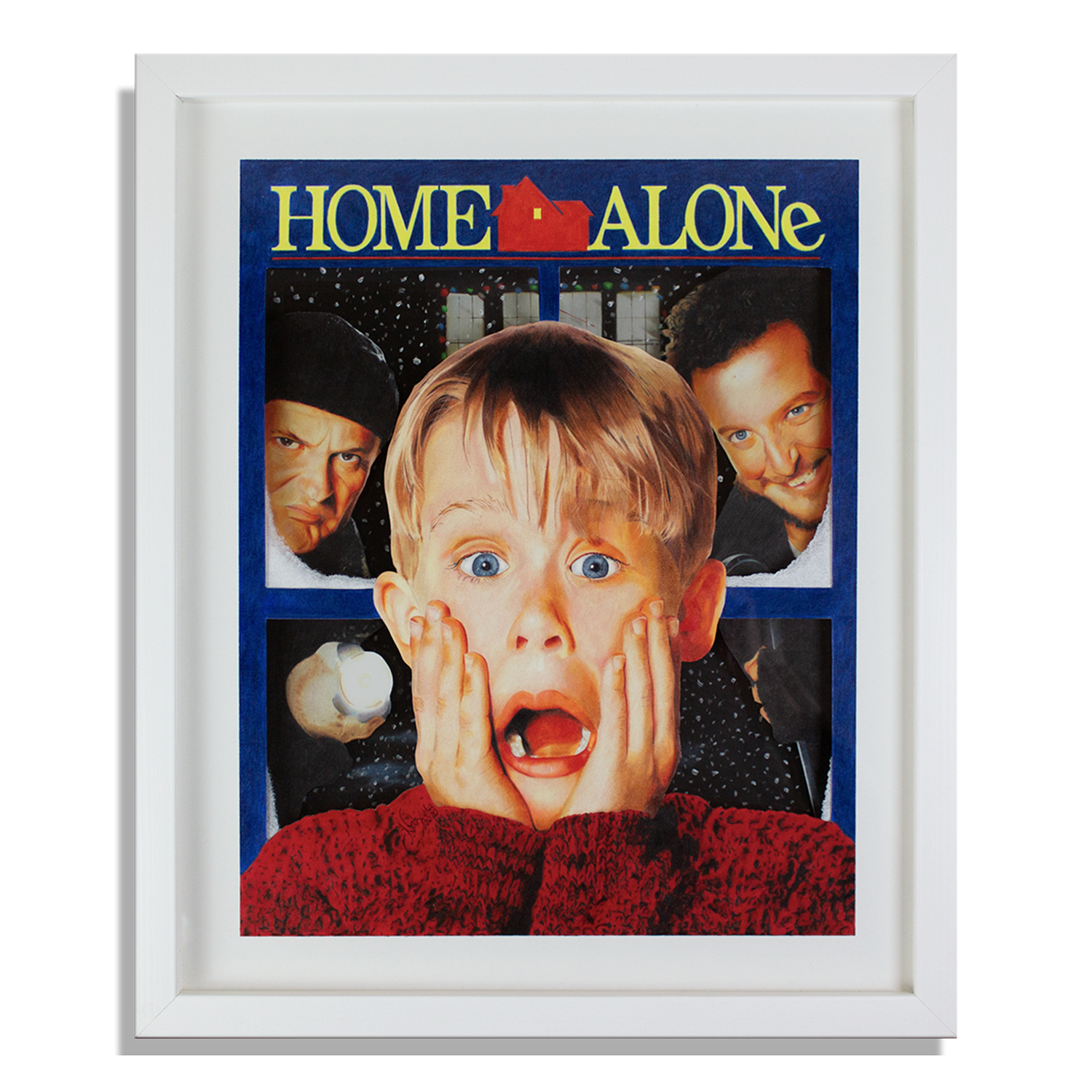 A 3D layered coloured pencil drawing of the CLASSIC MOVIE Home Alone. It took over 100+ hours to create. This style of art allows light to cast shadows creating depth bringing the movie poster to life.