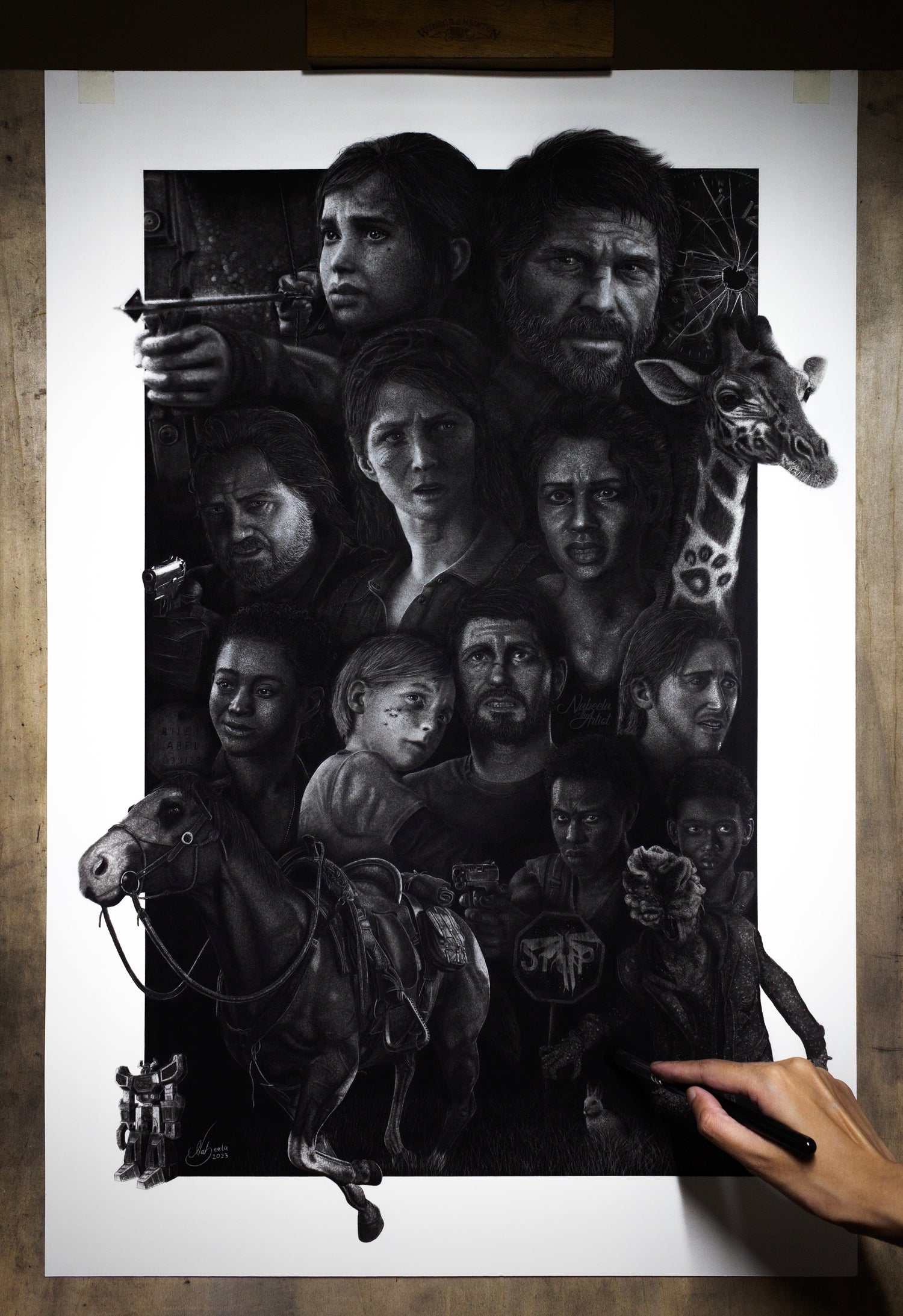 My charcoal drawing featuring all the best, beloved characters from the exceptional game, 'The Last of Us'. This artwork was produced specially for the 10th anniversary of the game's release!